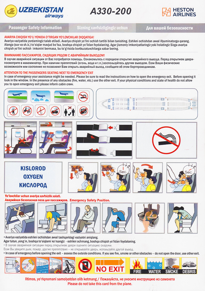 cards that say what to do in case of a crash-landing or ditching. Remember NEVER